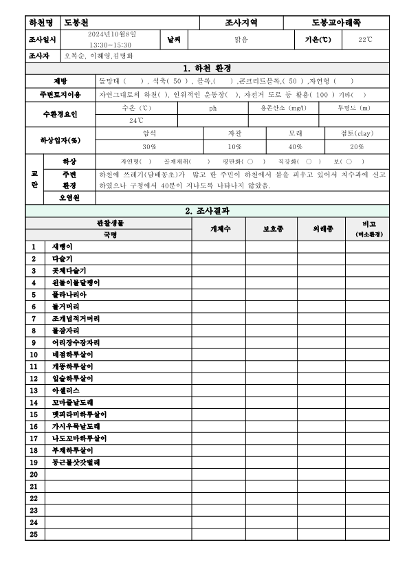 (도봉천)2024.10.08저서생물모니터링야장