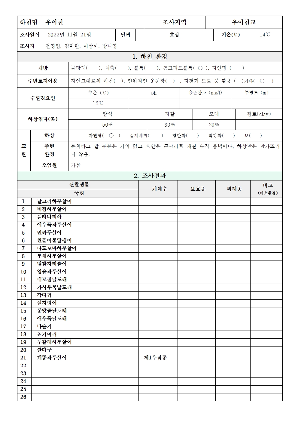 저서생물_22.11.21_우이천 우이천교