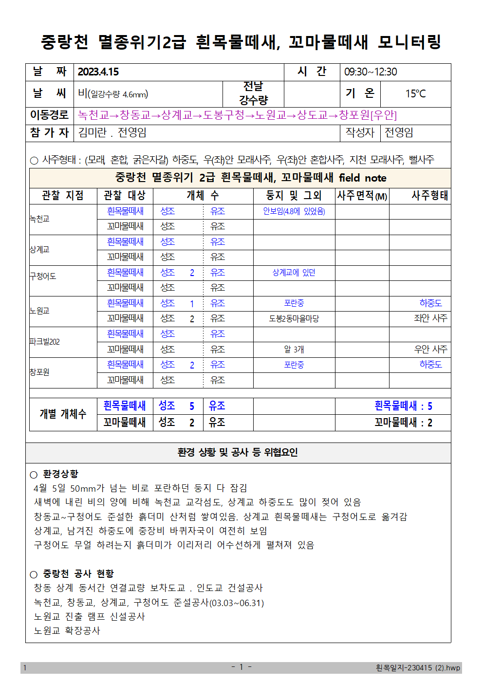 흰목물떼새(중랑천)_23.04.15
