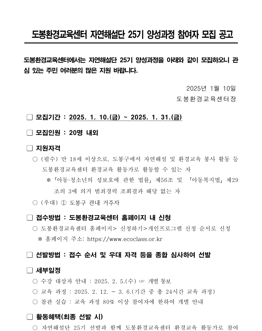 (01387) 서울특별시 도봉구 시루봉로6길 33(방학3동) 발바닥공원 내 도봉환경교육센터