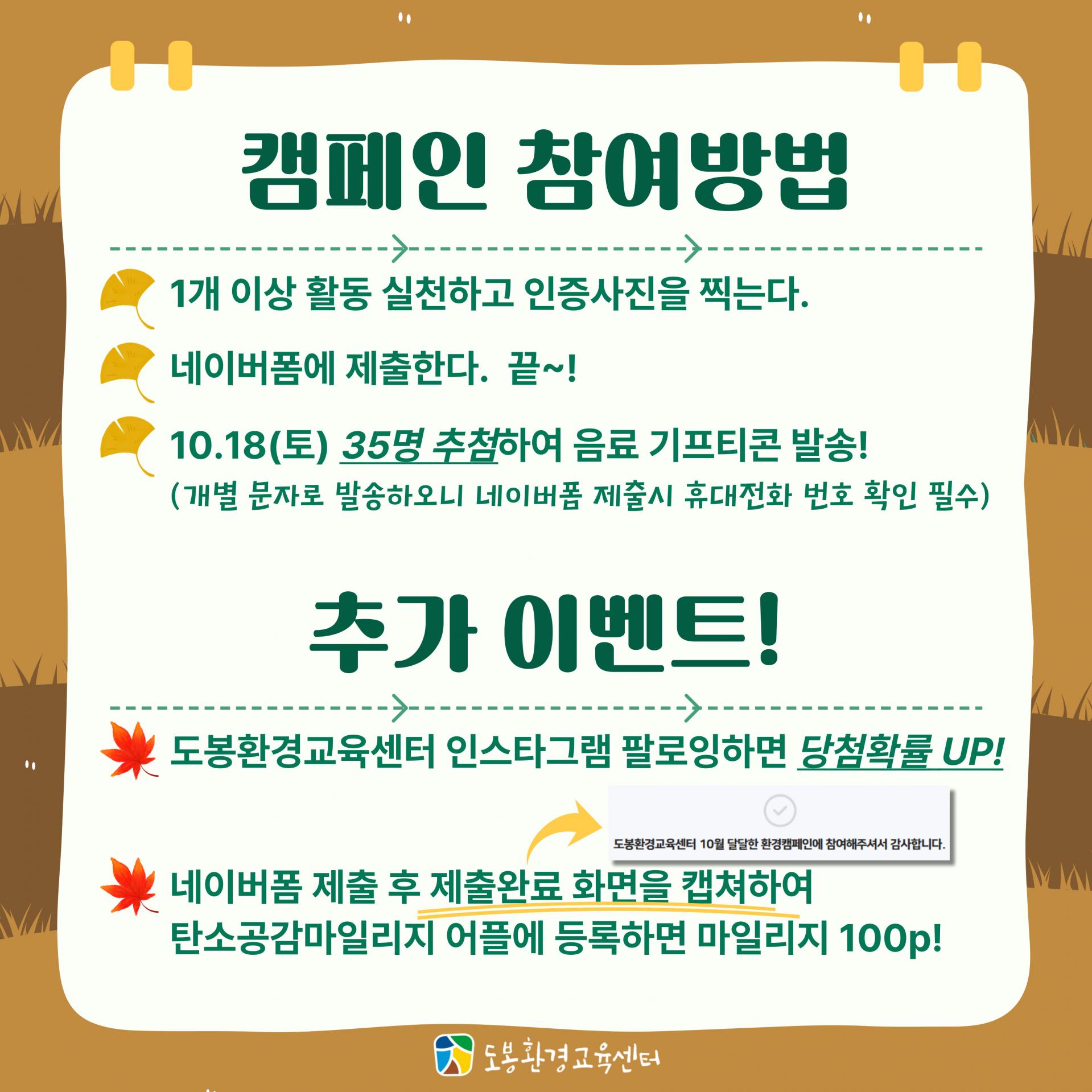 ✅ 당첨자 발표 : 2025.10.18(토) 도봉환경교육센터 인스타그램 및 홈페이지 공지사항에 게시