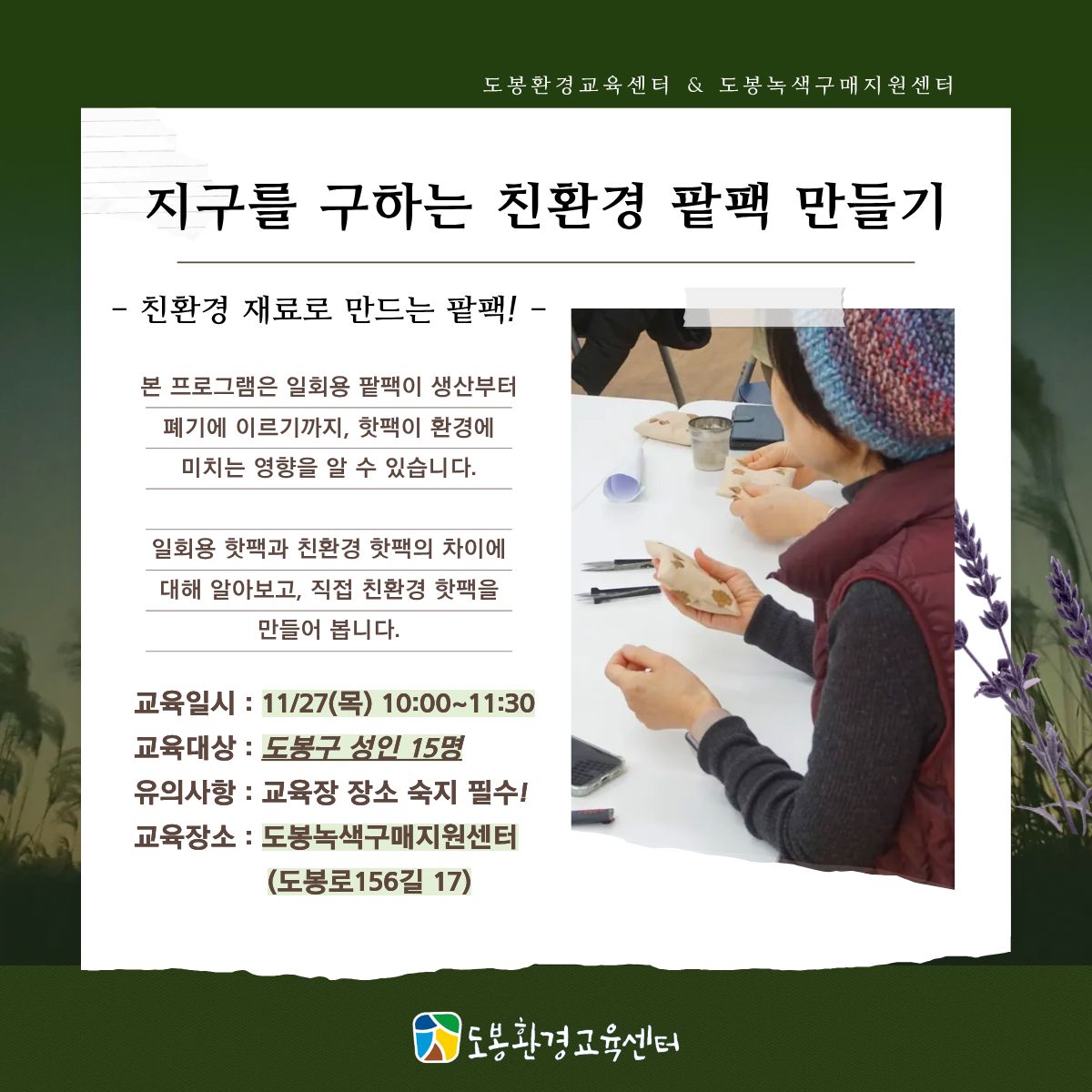 1.교육장소: 도봉 녹색구매지원센터(도봉로156길 17) <위치보기>